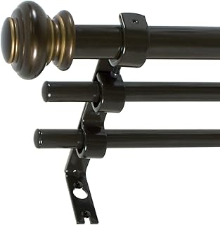 Decopolitan Beme International Urn Telescoping Double Drapery Rod Set, 72 to 144-Inch, Brown