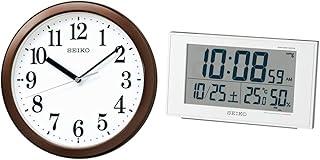 セイコークロック 掛時計 電波 アナログ コンパクトサイズ 茶メタリック 直径28.0x4.6cm BC416B & 置き時計 01:白パール 本体サイズ:8.5×14.8×5.3cm 電波 デジタル カレンダー 快適度 温度 湿度 表示 BC402W【セット買い】