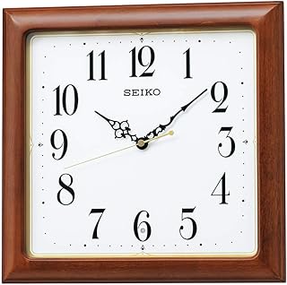 セイコークロック 茶木地 本体サイズ:33.0×33.0×4.8cm 掛け時計 電波 アナログ 木枠 四角 KX248B