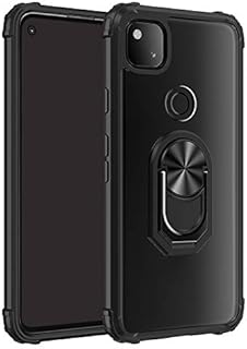 Pixel4a(5G) クリアケース/カバー 側面TPU+PC背面プラスチック製 シンプル 耐衝撃 一体型スマホリング付き 背面透明ケース グーグル ピクセル4a(5G) ハードケース シンプル アンドロイド スマフォ スマホケース/カバー[Pixel4a 5G(ブラック)]