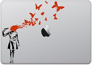 カインドストア MacBook Air/Pro 13インチ マックブック ステッカー シール バタフライ ガール バンクシー Girl Butterfly BANKSY ブラック/レッド M556-B