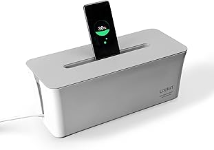 LOUKIN ケーブルボックス 大容量 電源タップ収納 スマホスタンド付き コード配線収納ケース ケーブル隠し ケーブル結束バンド4本付き 39.5x16.5x15.5cm