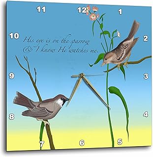 3dRose DPP_184179_1 His Eye is on The Sparrow、ゴスペルHymn 2つのスズメのウォールクロック、25.4x25.4cm
