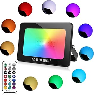 MEIKEE RGB投光器 LED 雰囲気 フラッド ライト 屋外 カラーライト 【2020最新版】調光調節 イルミネーション 25W 舞台照明 ウォールランプ 防水 防塵 クリスマス ウェディング バー ホテル ラウンジ クラブ用の装飾照明 ワークライト 照明 ワークライト 店舗 駐車場 イベント 看板照明 樹木 天井 白・赤・橙・黄・緑・青・藍・紫など12色 【2つモード 6つ明るさ リモコン付き 2年間保証】