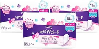【まとめ買い】 ウィスパー 1枚2役Wガード 女性用 吸水ケア 15cc おりもの&水分ケア パンティライナー 66枚入り 19cm 大容量パック × 3個