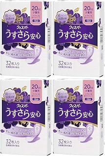 【まとめ買い】ウィスパー うすさら安心 女性用 吸水ケア 20cc 少量用 ナプキン型尿ケアパッド 32枚入り 19cm (少量の尿モレ用)×4個