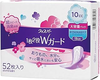 ウィスパー 1枚2役Wガード 女性用 吸水ケア 10cc おりもの&水分ケア パンティライナー 52枚入り 19cm 大容量パック