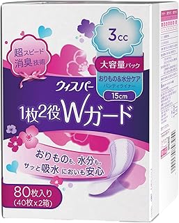 ウィスパー 1枚2役Wガード 女性用 吸水ケア 3cc おりもの&水分ケア パンティライナー 80枚入り 15cm 大容量パック