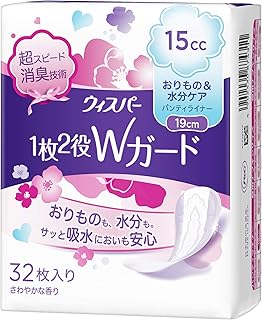 ウィスパー 1枚2役Wガード 女性用 吸水ケア 15cc おりもの&水分ケア パンティライナー 32枚入り 19cm