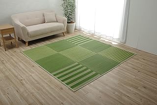 イケヒコ・コーポレーション い草 ラグ カーペット 撥水 滑り止め 不織布 格子柄 HSラスタ カジュアル 抗菌防臭 グリーン 約190×250cm #8475730