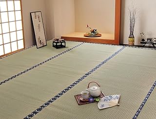 イケヒコ い草 花ござ カーペット 3畳 国産 『京刺子』 ブルー 本間3畳 (約191×286cm)