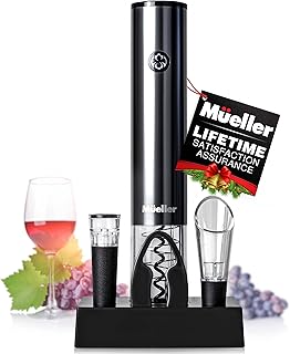 Mueller 電動ワインオープナーセット - 充電式バッテリーとUSB充電ケーブル - 電気コルクスクリューオープナー フォイルカッター付き ワインポアラー 真空ストッパー - ステンレススチール(電池付属)