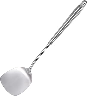 Newness 中華鍋スパチュラ [防錆 耐熱 一体型構造] 丈夫な304ステンレススチール製スパチュラフライ返し 人間工学に基づいた真空ハンドル付き 調理中華鍋フライ返し キッチン用 15.16インチ