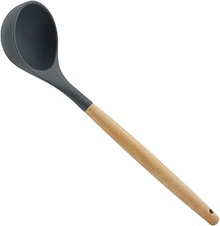 Newness シリコンスープレードル おたまスプーン ラウンド木製ハンドル付き 耐熱性 ノンスティックキッチン調理スプーン ソース/スープ/シチュー/チリ/サラダドレッシング/ソーススプーン/12.4インチ