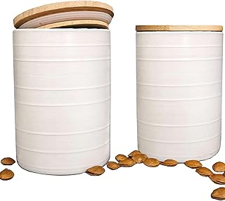 77L 食品保存容器 (2個セット) セラミック食品保存容器 ストレージバッグと木製蓋付き 32.80液量オンス (970ml) ポータブル気密食品保存容器 コーヒー ナッツ 紅茶などに (白と黒)