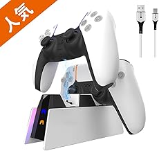SEISYUN ps5コントローラー充電器 【スプリング式挿入口・給電安定】 5V/2A 3時間 デュアル急速充電 ps5 充電スタンド 2台同時充電可能 過充電防止 LEDインジケータ コントローラー 収納 TYPE-C線付き