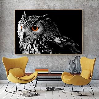 HD壁アートキャンバス絵画黒白いフクロウポスターと北欧の動物の写真北欧のリビングルームの装飾、50x70cm(フレームなし)