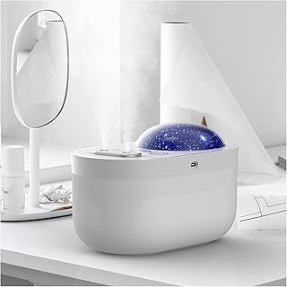 加湿器 スタープロジェクター 卓上 USB充電式 超音波式 ベッドサイドランプ 星空ライト 3色LED 子供部屋 花粉対策に 乾燥防止 空焚き防止 空気浄化機 1000ML (ホワイト)