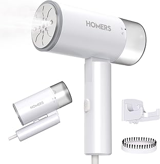 【最新改良版 & 超軽量】 スチームアイロン 衣類スチーマー ハンガーにかけたまま 立ち上がり25秒 ハンディースチーマー 時短 シワ伸ばし 10分連続噴出 携帯小型 アイロン 360°連続スチーム パワフル 携帯用アイロン 80ml コンパクト 650g 軽量 脱臭 除菌 水漏れ防止 スーツ 衣類 スチーマー 携帯便利 旅行 出張 家庭用 HOMCA